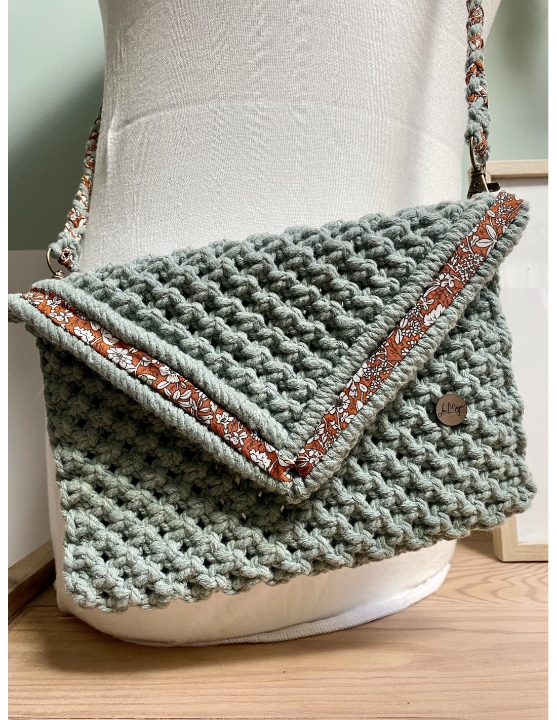 Réalisée à la main avec de la corde fabriquée en France en coton certifié biologique, GOTS et OEKO&TEX et une touche de tissu fleuri.